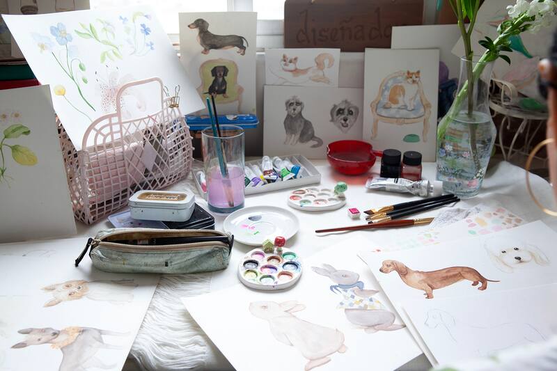 Aunque como diseñadora gráfica Angélica Urrutia trabajó en diferentes cosas, siempre tuvo la intención de tener su marca propia en la que pudiese tener toda la libertad para crear, un lugar donde desplegar toda su creatividad. En 2013 se fue a estudiar Motion Graphics en Madrid (animación) y fue en esa búsqueda que encontré también talleres de ilustración y cerámica. “Fue algo mágico porque descubrí un taller de intervención de cerámicas sin saber que esto podría ser algo que se convertiría en un trabajo. Nunca lo imagine así”, cuenta. Al volver a Chile, sin trabajo, vio el momento preciso para crear lo que siempre anheló. En 2014 nace Vuela como el viento -nombre que surge de la idea de darse a sí misma el impulso para empezar- espacio en el que ilustra simples postales en acuarela. “Quise dedicarme a la naturaleza y animales que es lo que me inspiraba más y me salía de forma natural. Así, poco a poco fui soltando la mano para probarme como ilustradora-diseñadora”.