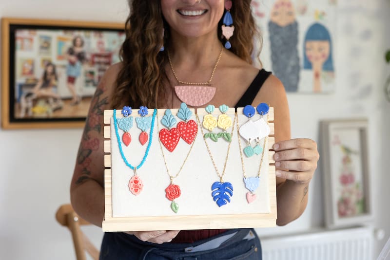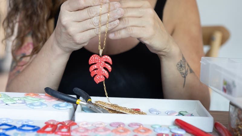 Sin embargo, lo que comenzó como un complemento para su café pronto se transformó en algo más. “Me di cuenta de lo mágico de este material, de lo versátil, hermoso y noble que es la arcilla. Como fanática de los aros desde siempre, decidí hacerme unos aros y un colgante para mí”, relata Connie. Ese experimento, que parecía ser solo un juego, terminó marcando un antes y un después: “Me explotó la cabeza”, confiesa.