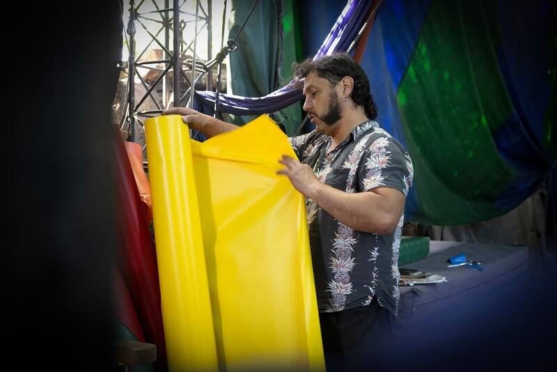 “La carpa rememora el coliseo y los circos máximos romanos donde se dejaba la vida por la libertad. Redonda gracias al galope del caballo y en honor a la Tierra, es también de los colores de las fantasías ligeras como el clima y vulnerables como la naturaleza misma”, dice Camilo, quien además ve en estas estructuras de tela y metal, cuerda y cable, combo y estaca, un nuevo nicho para las artes, seminarios. inauguraciones, charlas, eventos de empresa, coaching, teatro, danza, cine, circo, cumpleaños, matrimonios. Y es que para él, “todo cabe en este gran útero que mes a mes sangra historia, folclore y magia”.