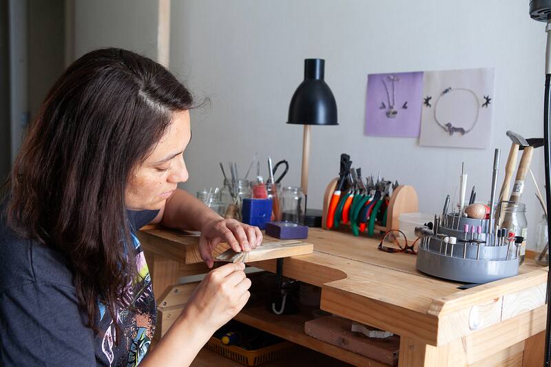 Maureen es diseñadora, orfebre y creadora de la marca Mauva (@mauvajoyascl) donde diseña y fabrica pulseras, anillos, collares y aros en plata y piedras como cuarzo rosa y ónix, entre otras. Cada una de sus joyas –dice– es una historia en miniatura, pues la idea de su proyecto es que cada persona pueda personalizar su pieza de orfebrería inspirándose en su propia mascota para así llevarla a todas partes.