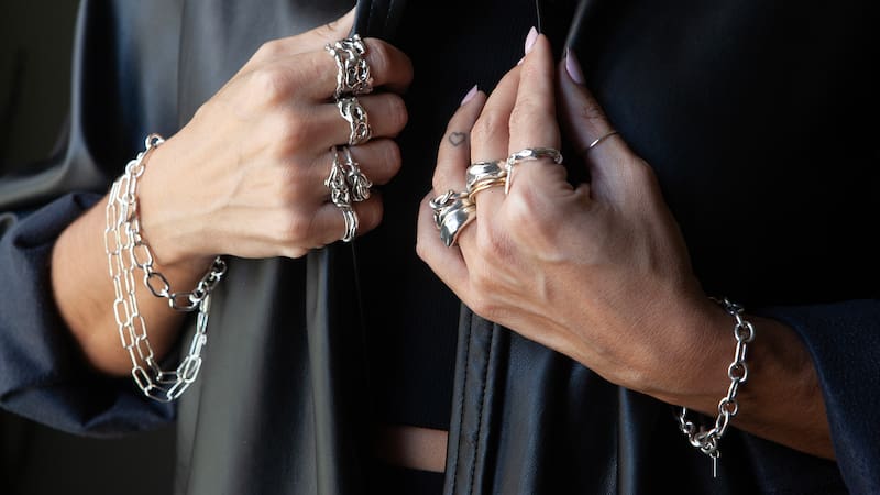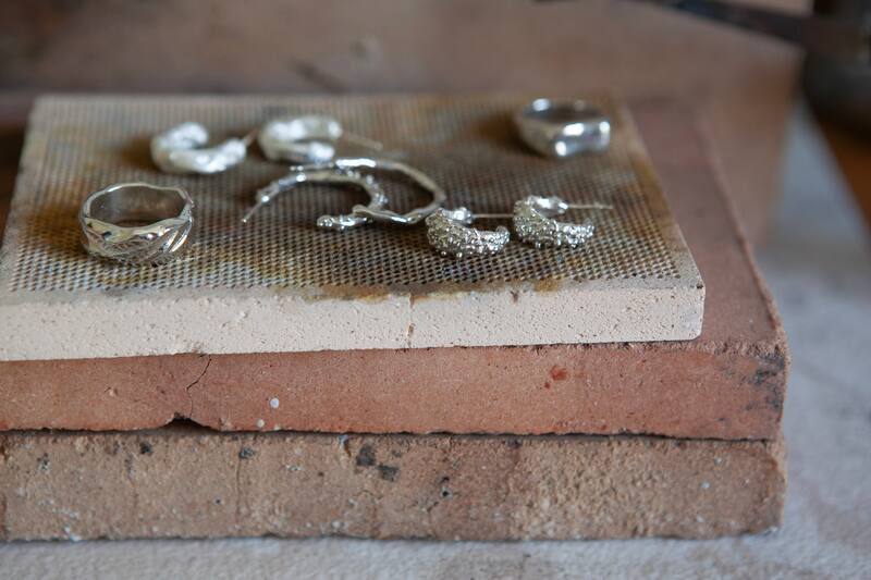 Belén Cámbara creó Räma hace seis años a partir de un deseo de permanencia, de dejar un legado. Dedicada también al maquillaje, aunque es un oficio que le sigue gustando mucho, quería indagar en algo más profundo, llenar un vacío. “Necesitaba desafiarme más y fue en mi primer encuentro con el metal que lo entendí y lo supe inmediatamente. Esto era. Estudié, armé mi taller y empecé con cosas que no tienen tanto que ver con lo que Räma es ahora. Pero no reniego de mi pasado, es lo que me ha llevado a evolucionar”, dice Belén, quien lentamente fue transformando sus creaciones cuando empezó a observar la naturaleza, el movimiento del agua, la textura de la arena, el mar. Elementos que se han convertido en el sello de la marca.