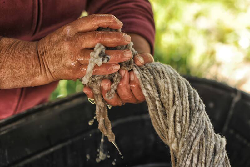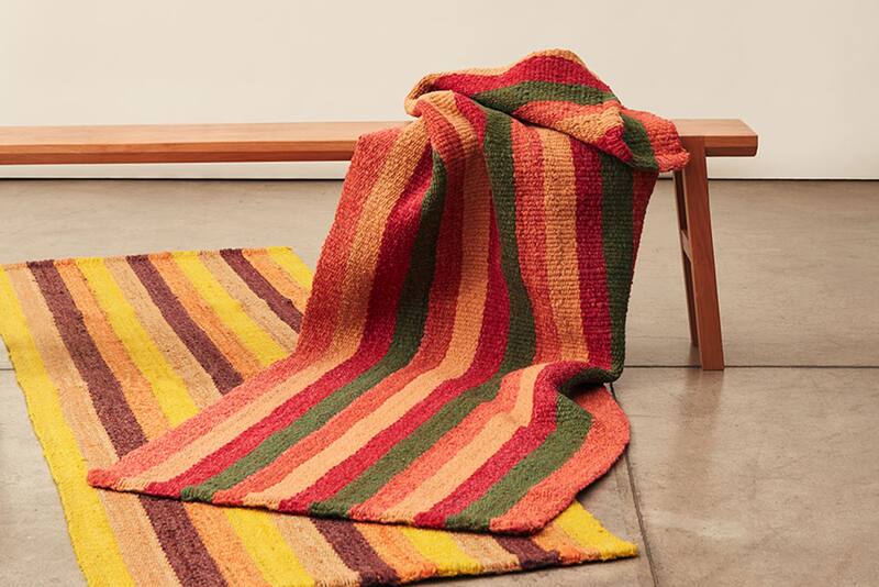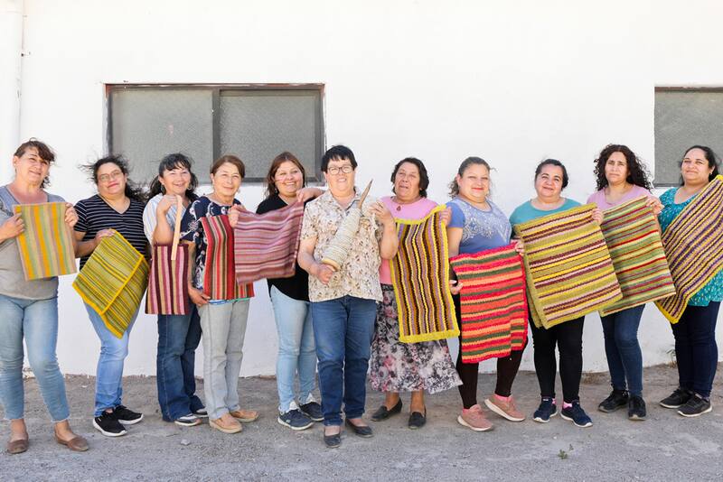 En Chapilca, Coquimbo, la textilería fue gatillada por la antigua práctica de trasladar los rebaños de un lugar a otro a cargo de crianceros que buscaban forraje para los animales. Así, podían sobrevivir a las largas y frías jornadas mientras las mujeres de la zona tejían los más finos ponchos y jergones, además de maletas o alforjas. Un oficio que sigue vivo gracias a artesanas que parten hilando el vellón aún sucio con sus manos o con ruecas. El resultado es un hilo grueso, firme, ideal para piezas que necesitan alta resistencia. Como lo tiñen todavía con impurezas, los colores tienen ciertas vetas, lo que le da una identidad única a cada creación. Después de hilar y teñir el vellón, lo lavan y limpian a mano, y una vez terminado el proceso, montan el telar de palo plantao’, que puede llegar a medir ocho metros de largo. Entonces, comienzan a dar vida a sus piezas. Montelar es el nombre de esta colección que fue desarrollada por Artesanías de Chile junto a la agrupación Tejedoras de Chapilca y la colaboración de la creadora de Acurruca Tejidos.
