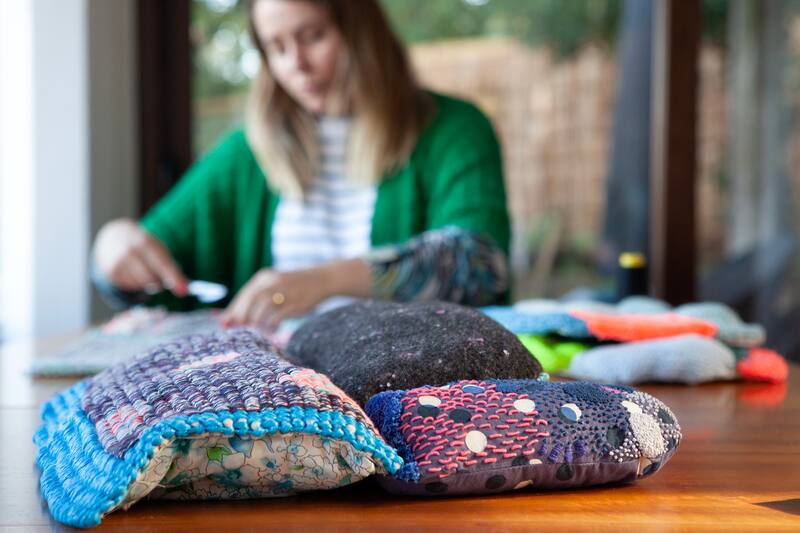 “Crecí en La Serena y estudié en la Escuela Experimental de Música Jorge Peña Hen donde aprendí violín y viola. En paralelo a mis estudios de literatura, tomé cursos de pintura y tejido a telar en la Universidad Católica, y fue el paso por esas disciplinas lo que hizo que me decidiera a dedicarme al arte textil.