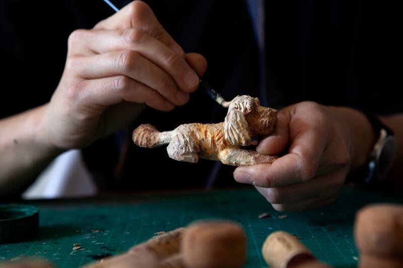 Motoko Toda (@moto_toda) es una escultora formada en la Universidad de Arte de Osaka que, con madera y corchos de vino, crea pequeñas figuras talladas, especialmente animales como perros, gatos, palomas, conejos e hipopótamos. Pequeñas obras de arte que surgen de un delicado y minucioso trabajo.