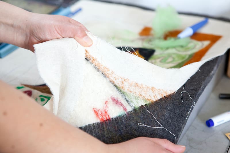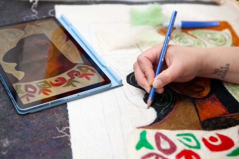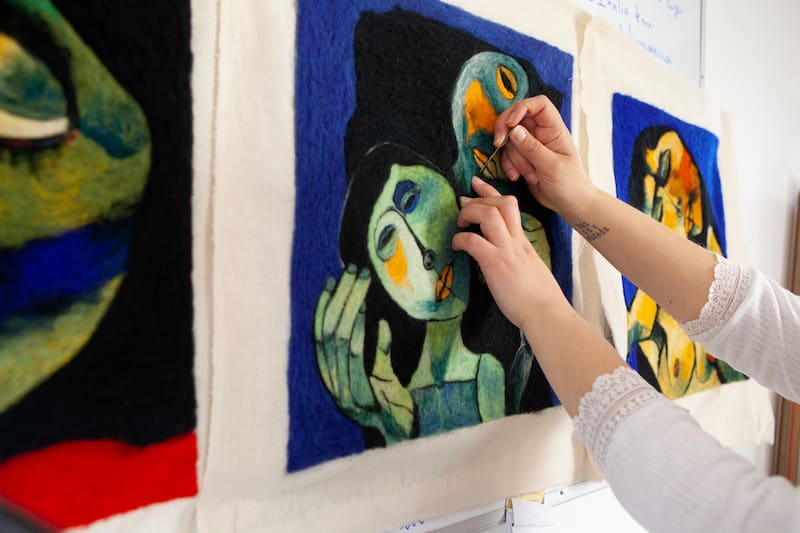 Francisca Moreno es profesora de artes visuales, fotógrafa y actualmente artista visual textil, oficio a través del que busca revalorizar el uso del fieltro agujado por medio de la pintura, dándole un nuevo soporte de obra expositiva. Su trabajo ha estado expuesto en el Carrousel del Museo del Louvre -donde además pintó y demostró en vivo frente a cientos de personas su propia técnica-, Dubai, Canadá, Ecuador y Francia. Ahora se prepara para representar a Chile en el Festival de Artesanías de América2023 en Cuenca, Ecuador. Instagram: @artefranmoreno.