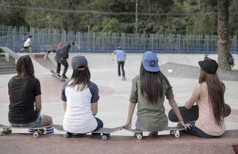 Las mujeres skaters se reúnen, especialmente, en el Parque Bustamante y en los skateparks del Parque O'Higgins, Parque Araucano y, desde el 27 de septiembre, en el nuevo espacio de 660 m² de Lo Barnechea, donde se realizó esta producción.