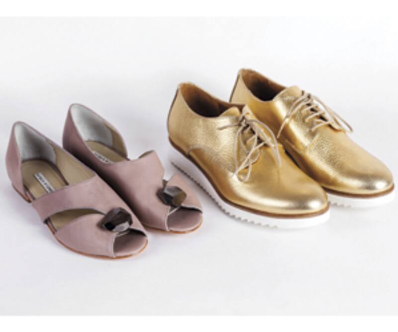 “Los zapatos de Bárbara Briones (izquierda, $120.000, www.barbarabriones.com) son guantes para los pies, además de tan bellos que podría contemplarlos y no usarlos jamás y eso ya me haría feliz. De estos dorados, de Hush Puppies, me enamoré. Además de lindos y actuales, permiten elevarse unos centímetros y descansar de los tacos altos ($ 79.990)”.