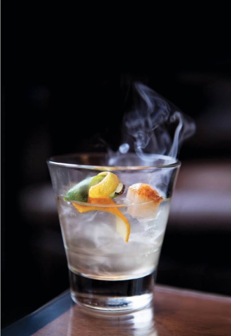 En un vaso con hielo colocar el vodka, miel y cáscaras de cítricos. Decorar con el terrón de azúcar y caramelizar el azúcar con un soplete pequeño. Servir de inmediato.
