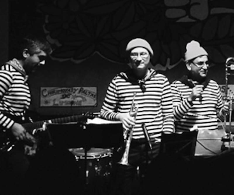 Manuel Prieto (der), líder de Manu da Banda, junto a Paula Reed y Felipe Canales, dos de los diez integrantes del grupo.