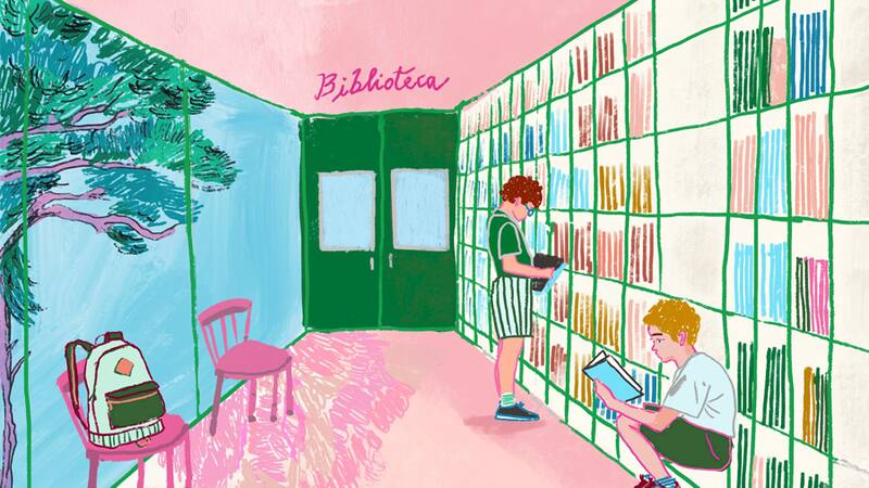 Una vez con el libro entre mis manos, en vez de sentarme en las mesas de estudio, iba a la sala de lectura, donde había cojines arrojados en el suelo y otros pocos alumnos como yo pasando lentamente de página en sus lecturas. Me pasaba los recreos enteros ojeando revistas, consultando diccionarios y sobre todo leyendo libros de detectives en los que cada una creaba su propio final. Ahí me sentía entendida, acompañada y desafiada.