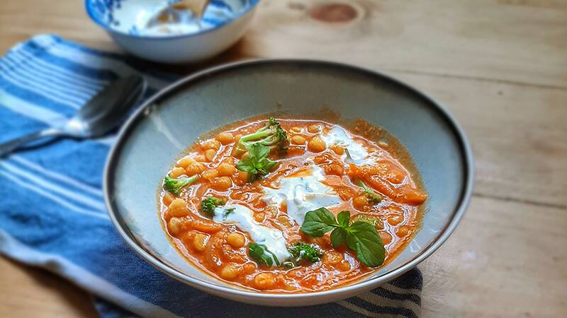 “Es importante aprovechar los productos de estación porque se reduce el desperdicio de alimentos, los recursos de traslados y conservación, y además podemos disfrutarlos en su esplendor”, dice la cocinera Josefina Turner (@josefinaturnerf), quien nos preparó una serie de recetas con ingredientes de otoño. Este es su curry de garbanzos con brócoli y raita de pepinos. ¿No sabes qué es la raita? Se trata de una salsa tradicional de la cocina india que generalmente lleva yogur, pepino y menta fresca.