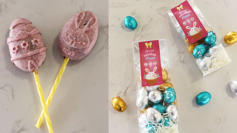 KetoFree, APLV: huevitos y conejitos ketoveganos, pensados para quienes buscan opciones sin azúcar, sin gluten y sin ingredientes de origen animal. Tienen desde paletas de chocolate de conejito hasta bolsitas de 80 gramos con chocolate 70% cacao endulzado con alulosa, que incluyen mitades de huevitos macizos, A esto se suman sus huevos de mazapán vegano, elaborados con harina de almendras y recubiertos en chocolate, también libres de gluten, soya y azúcar. Al no contener leche ni derivados lácteos, son una alternativa apta para personas con Alergia a la proteína de la leche de vaca (APLV), ofreciendo una opción para mamás y niños.