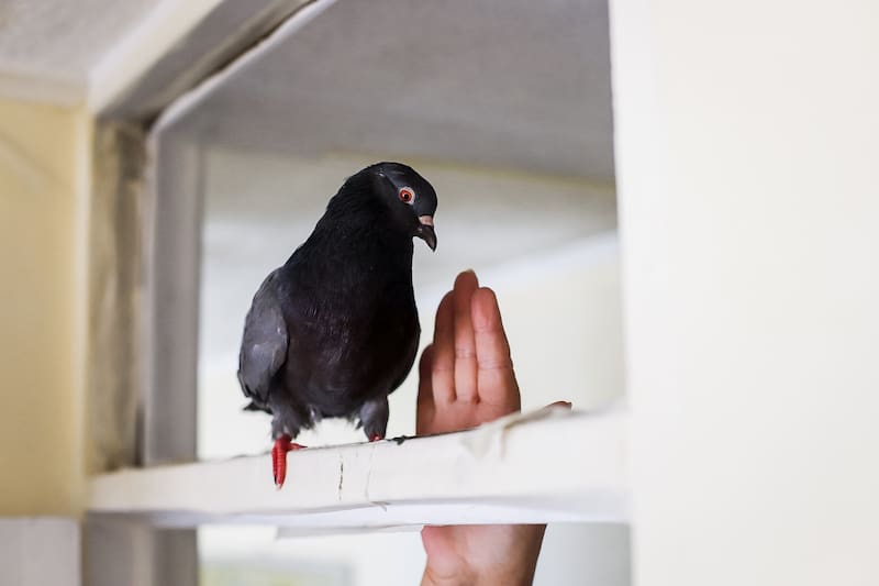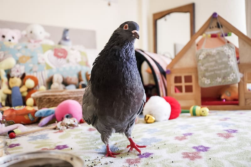 Hoy viven juntos en un departamento, donde el palomo vuela libremente sin necesidad de utilizar jaulas. En la noche duerme en uno de esos bolsos para transportar mascotas, que en su interior tiene una manta que usa como cama. Y se comporta como cualquier otra mascota: demuestra afecto y proporciona compañía.