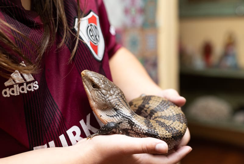 Al igual que cualquier mascota, los animales de Saida regalonean, tienen sus mañas y también a sus dueños preferidos. “El Blue, el lagarto más grande —un dragón de lengua azul—, duerme con mi hija y, si intento sacarlo, se enoja y emite un sonido que ya sabemos qué significa: está molesto”, detalla. “Y cuando ella se pone calientacama, él se mete entre medio y no se mueve”, agrega riendo.
