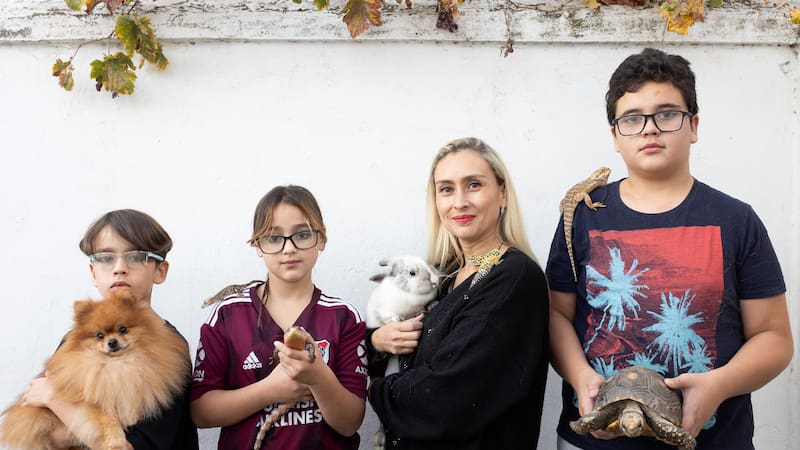 “Siempre que nos preguntan cómo es nuestra familia, decimos que somos una familia multiespecie”. Así describe Saida Pollak a su núcleo familiar, que comparte con tres hijos y 18 especies de animales en su casa en Ñuñoa.