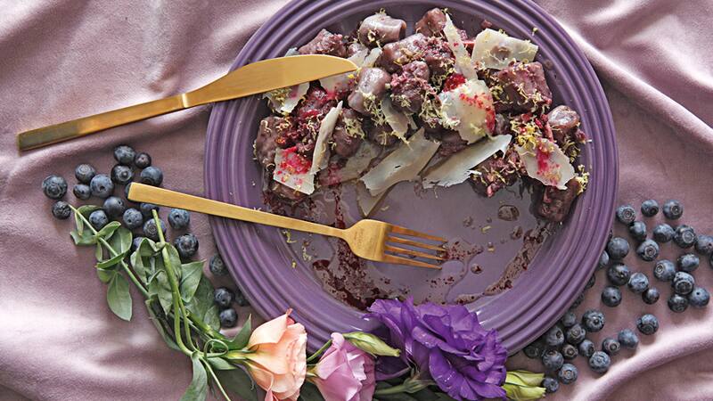 5. Incorporar a la fuente la pasta de aceitunas para humectar y aceitar los ñoquis.