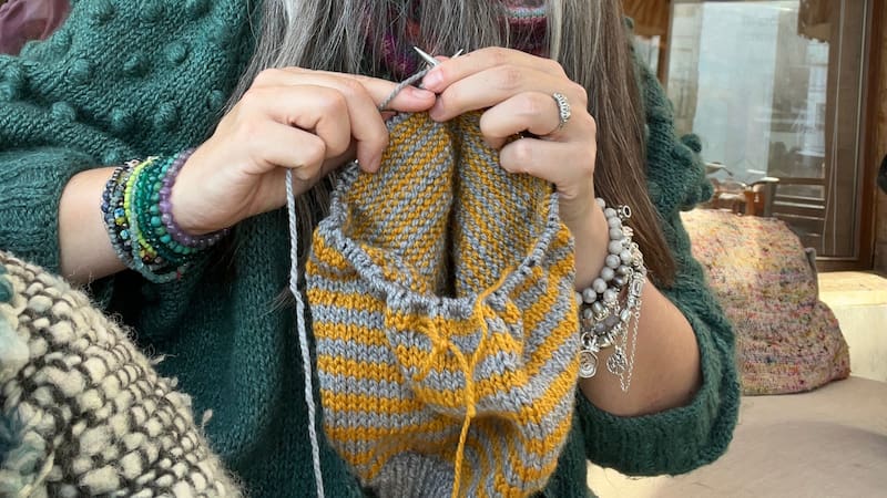 Desde cómo elegir lanas y combinar tonos, hasta leer diagramas, ordenar las hebras y aceptar que la perfección no llega a la primera, Jandi comparte consejos prácticos para iniciarse en el jacquard sin frustraciones, además de recomendar patrones ideales para dar los primeros pasos.