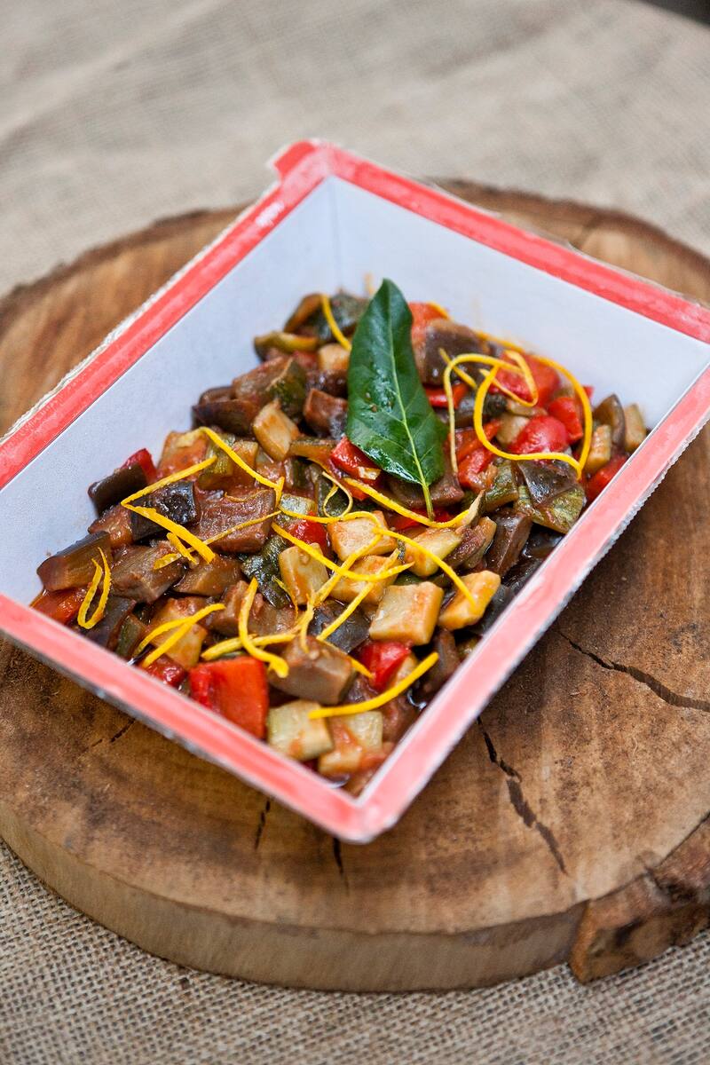 2. Ratatouille de pimentones, berenjenas y zapallos italianos ($4.390 la porción doble).