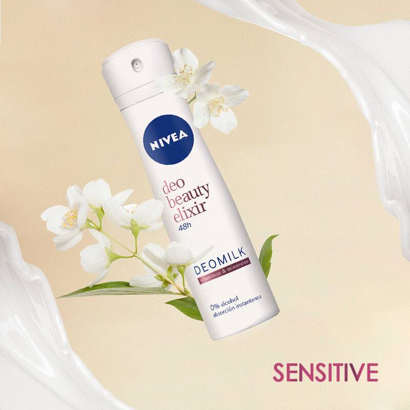 Nivea presenta el primer elixir antitranspirante enriquecido con Milk Essence, que hidrata, restaura y embellece la piel de tus axilas al instante. Con vitamina C, E y minerales y hasta 48 horas de protección con 0% alcohol.