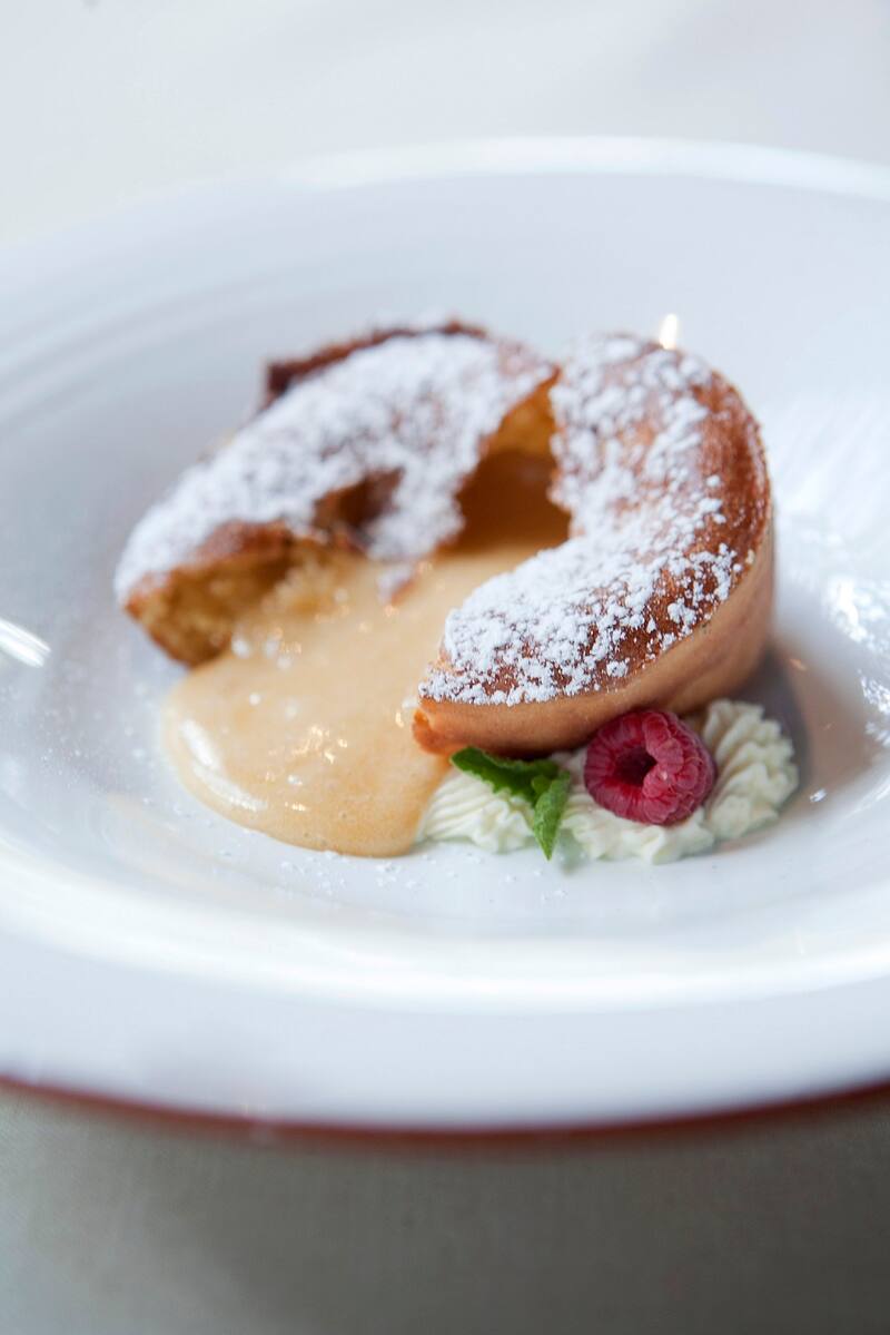 3- Volcán de almendra: soufflé líquido de almendra, yema de huevo y azúcar flor. Se sirve caliente, $ 5.000.
