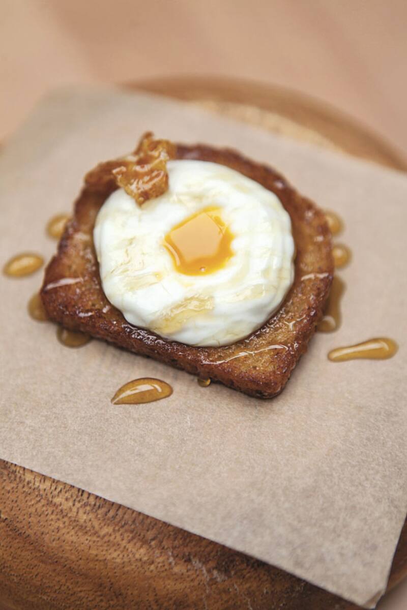 Desayuno para terminar, huevo y miel en una tostada ($2.600).[/caption]