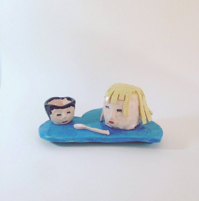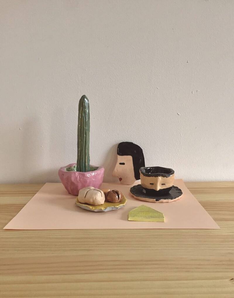 Desde ese día se enamoró de este trabajo manual y comenzó a estudiar: primero gestión cultural, luego hizo un taller de cerámica con la artista Tahia Strika y también fue a clases en Barcelona con Marina Rubio. Con el tiempo ha expuesto su trabajo en distintas galerías en Santiago, Buenos Aires, Lima y Barcelona, donde destaca por mostrar objetos con una reminiscencia a la infancia y con una estética pop, donde los colores fuertes y la "no perfección" son protagonistas. Por eso, a la hora de hablar de sus referentes, no asombra que nombre a Miju Lee, Joakim Ojanen o Linda Draper. Todas artistas que evocan a una cultura pop infantil. "Creo que mi imaginario viene de que cuando chica fui mucho a Mundo Mágico, podía pasar horas mirando los mini mundos que ahí se daban. Y me pasa lo mismo ahora cuando hago objetos pequeños, puedo pasar mucho rato contemplando esos pequeños universos", dice.