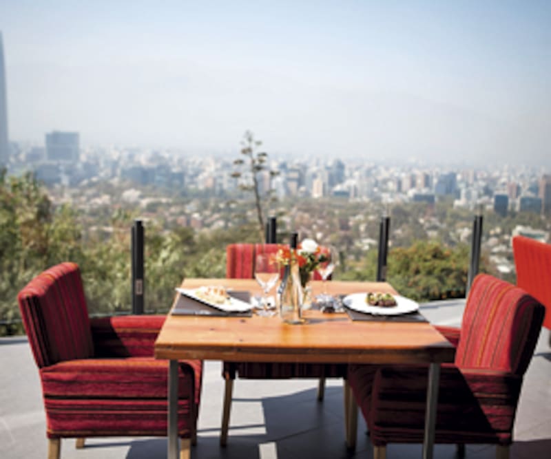 Vista: pocos restoranes hacen honor a su nombre tan literalmente como este: frente a las mesas del Vista –que abrió a mediados de 2014, donde antes funcionaba la Enoteca– se despliega uno de los paisajes más majestuosos de la ciudad, que en los días más limpios permite admirar la imponente Cordillera de los Andes. Ambientado con muebles sobrios de aires vintage, la comida está a la altura del espacio, a cargo del chef Nicolás Barrios, quien se formó en España y luego trabajó con el banquetero chileno Guillermo Rodríguez: centolla magallánica con quínoa y caviar negro ($ 7.800), lomo de ciervo con strudel de berenjenas y arándanos ($13.000) y una selección de aguas chilenas minerales, glaciares y termales. Acceso por Pedro de Valdivia Norte, fono 22335 4463. www.vistasantiago.cl