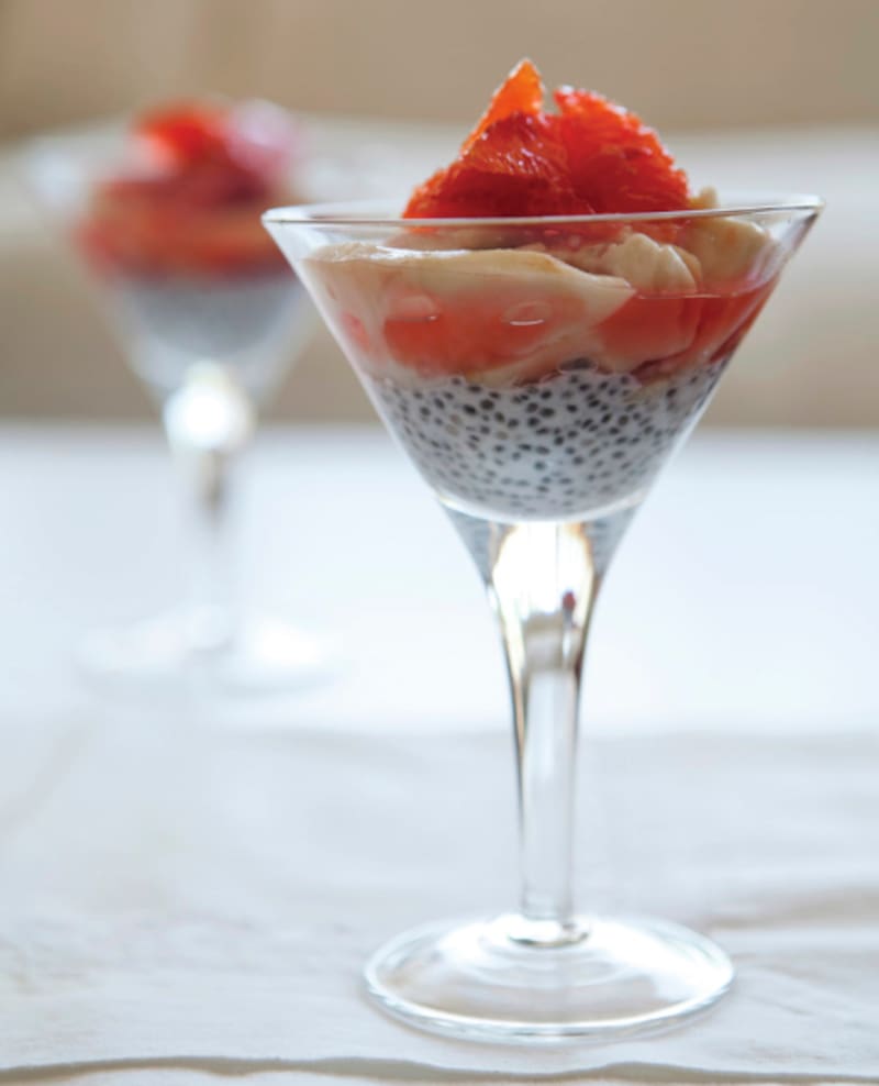 Parfait de chirimoya con crema de coco y chía