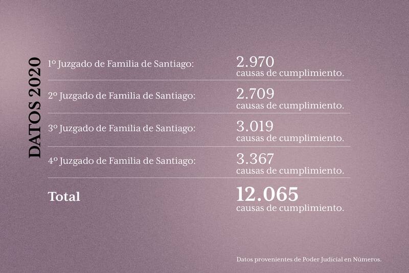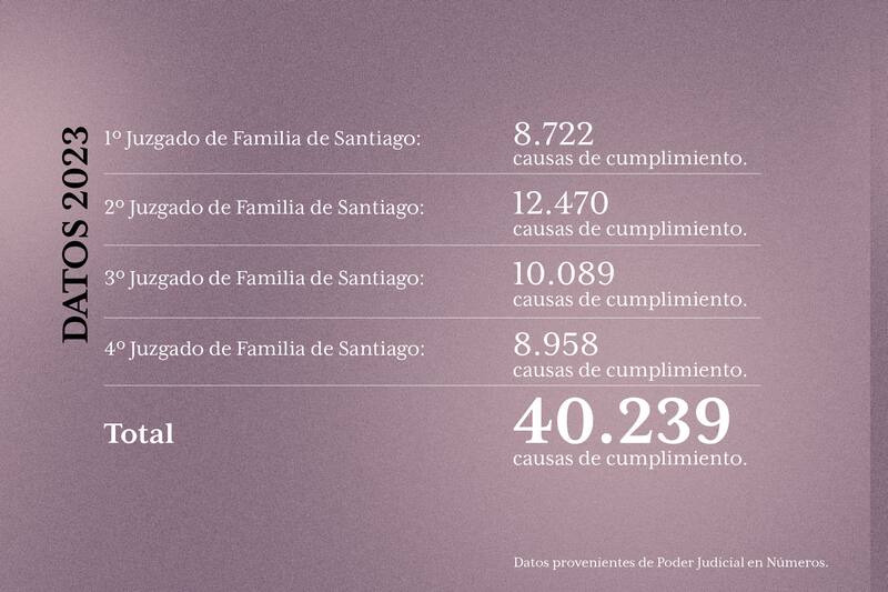Sólo en los cuatro Juzgados de Familia de Santiago, en 2019 existía un total de 12.065 causas de cumplimiento y en 2023 éstas llegaron a 40.239, es decir, más de tres veces. Pese a esta explosión, se ha logrado el pago de 162 mil millones de pesos desde los fondos de las AFP de los deudores de pensiones de alimentos.