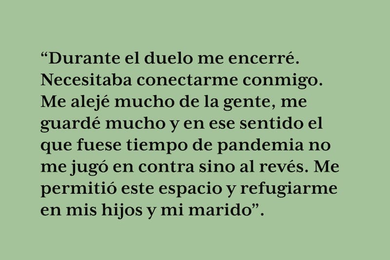 Después de esa noche horrible me encerré por completo. Fue otro de los momentos en los que la pandemia para mí no fue una desgracia sino más bien una ayuda. Porque yo no quería ver a nadie. Solo quería estar con mis hijos y mi marido porque sentía que la muerte de Raimundo nos había destruido. Por eso durante el duelo me encerré. Necesitaba conectarme conmigo. Me alejé mucho de la gente, me guardé mucho y en ese sentido el que fuese tiempo de cuarentenas no me jugó en contra sino al revés. Me permitió este espacio para refugiarme en mi casa, en mis niños, en mi marido.