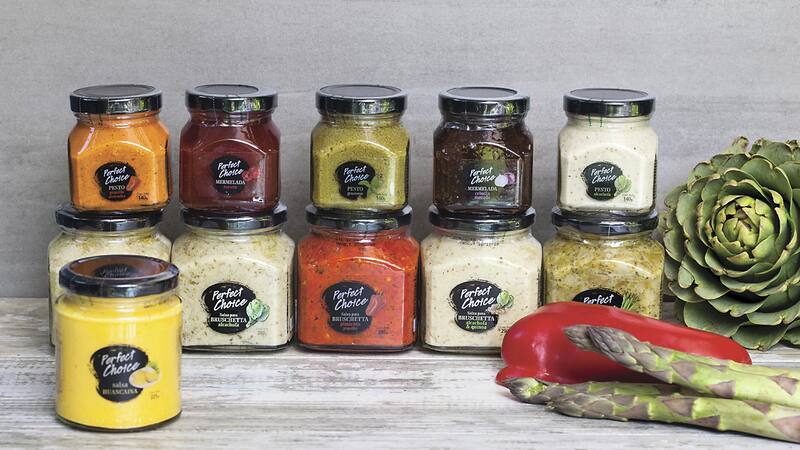 Productos gourmet para incorporar en preparaciones y aperitivos. Entre ellos, vegetales en conserva, pestos, mermeladas y salsas para bruschettas.