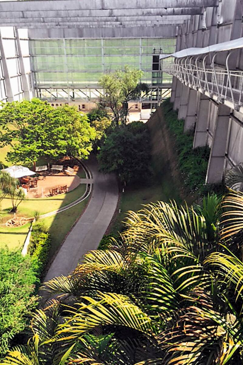 Uno de los jardines del edificio de Natura en Cajamar. Los arbustos del fondo son pitanga. Sus frutos son comestibles y sus hojas se usan en fragancias. En total, son cerca de 2.500 las materias primas naturales extraídas de hojas, plantas, flores, maderas, raíces y musgos que usa el Núcleo Olfativo de Natura.