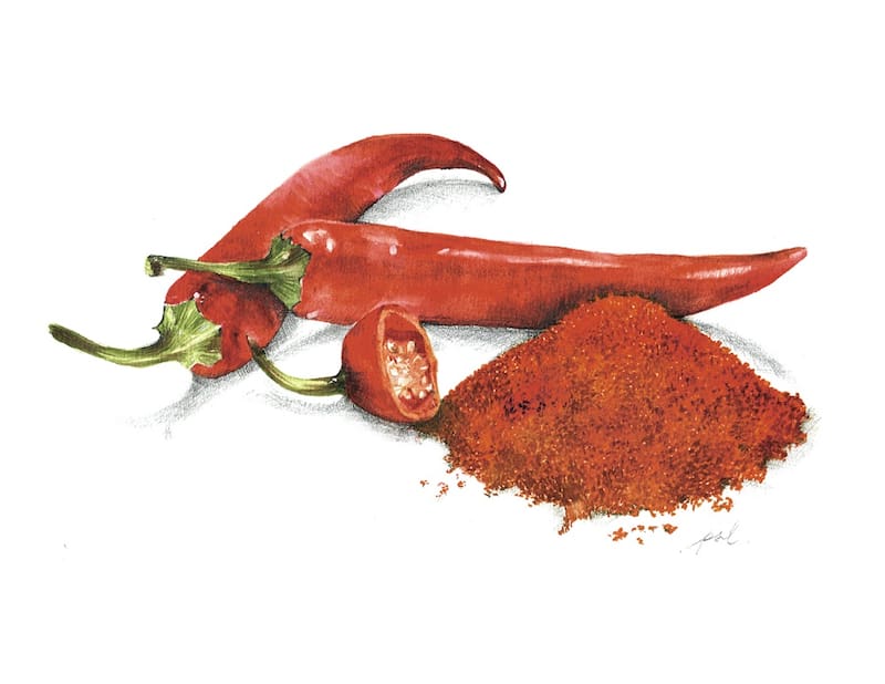 Oriunda de México y Panamá, la Pimienta de Cayena es el chile o ají rojo de alto picor que se muele para formar un fuerte polvo que por años se ha usado en la cocina indígena para sazonar las comidas. Su nombre lo recibe porque Cristóbal Colon confundió a este fruto con el pimentón originario de Asia, de ahí que suele confundirse con la paprika. Además de su uso culinario, las propiedades medicinales de la pimienta de Cayena la hace un saludable ingrediente para incorporar en la dieta diaria. La nutricionista Dawn Cooper (www.dawncooper.cl) señala sus cualidades: