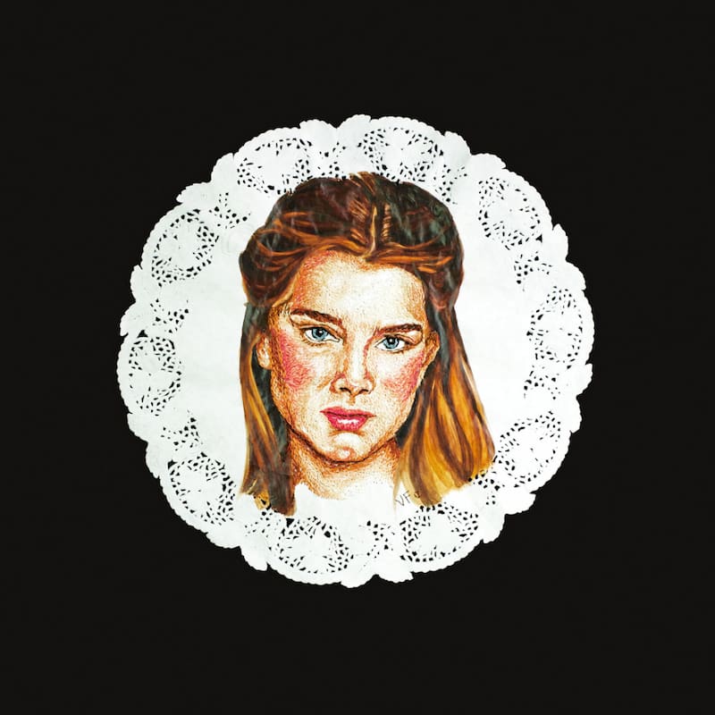 Retrato de Brooke Shields, bordado sobre papel.[/caption]