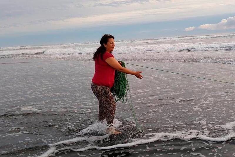 Aprendió pesca artesanal con su padre. “Tenía la opción de quedarme en la casa haciendo los quehaceres, pero preferí estar con él. Era la menor, así que siempre lo seguía. Íbamos a pescar al río y al mar y también a recolectar. De él aprendí cómo se rigen las mareas por la luna”, detalla.