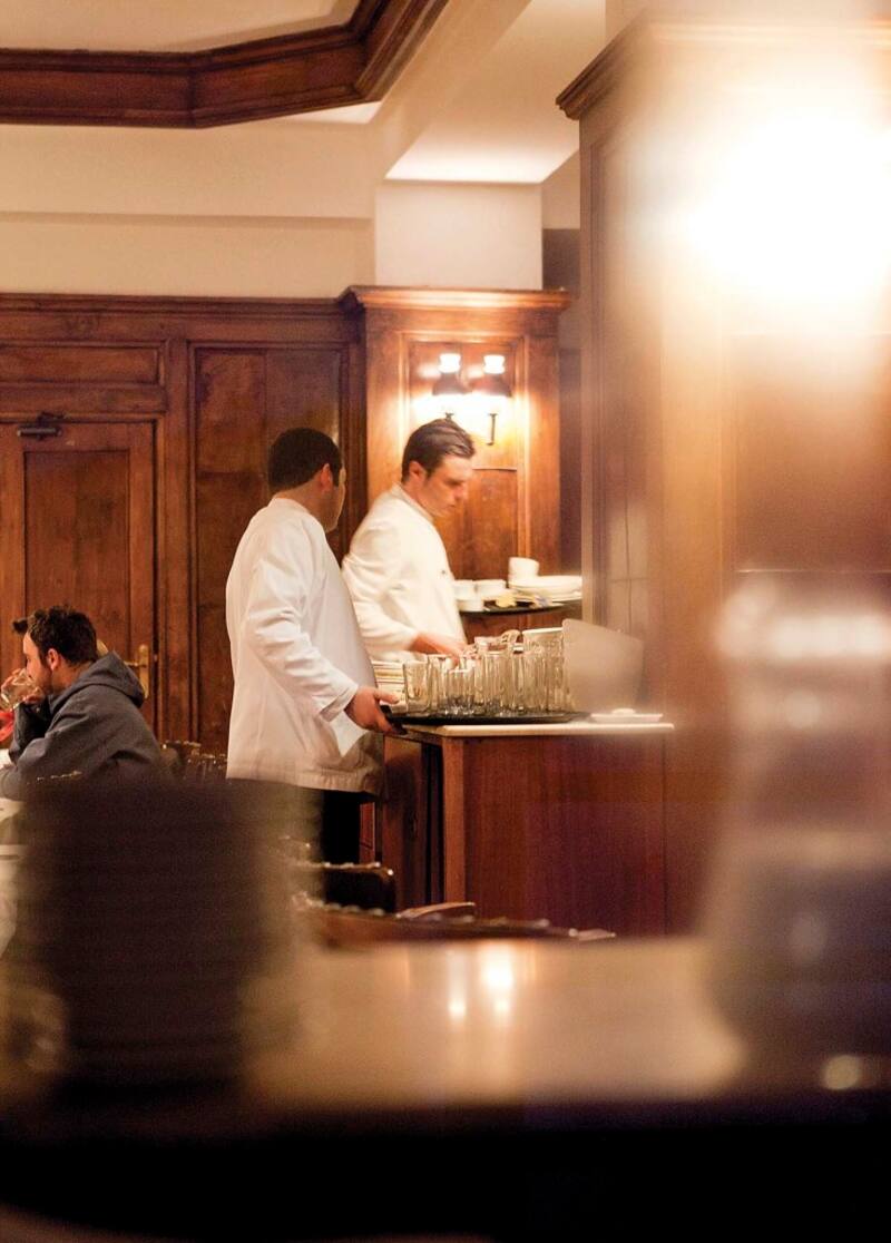 El hotel destaca por el acogedor ambiente que se vive tanto en el comedor principal, como en el bar. Cuero, muros de piedra y mucha madera le dan el carácter propio de un refugio de montaña. Mientras en el bar se vive un ambiente más relajado, es en el comedor donde Figueroa despliega lo mejor de su comida. ¿Su sello? El uso de productos locales, donde todo se elabora a mano: desde el pan o las mermeladas hasta cada uno de los postres. La carta, diariamente, ofrece ocho opciones de platos de fondo, los que no se repiten entre el almuerzo y la cena. Pastel de jaiba, sopa de locos, chuletitas de cordero con salsa de romero y miel con puré de zanahoria, un chacarero de costillar de cerdo en pan artesanal o preparaciones vegetarianas como un curry de verduras y tofu asado son algunas de las opciones que se ofrecen en el comedor. "Quiero que los pasajeros coman todos los días algo distinto, en un ambiente cálido y con sabores locales", resume Figueroa. A su gastronomía, se le suma el servicio. En el comedor está a cargo del maitre Juan Beiza, quien lleva más de 50 años en el hotel a cargo de dar la bienvenida a los clientes, presentarles al garzón que los atenderá toda la semana y preocuparse de que los platos vayan y vengan de la cocina con la precisión de un reloj suizo.