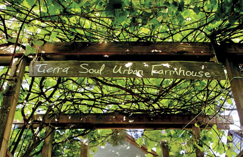 Durante el verano las parras que dan la bienvenida en el portón del Tierra Soul Urban Farm Guesthouse, están frondosas y a punto de que sus uvas maduren para cosecharlas. Tras ellas, un antejardín con una huerta donde crecen lechugas, coles, acelgas, papas y berries. Rodeada de manzanos, higueras, cerezos, perales y membrilleros, se levanta imponente una casona de madera que tiene más de un siglo de antigüedad. En el porche, David y Krista juegan con sus hijos Fia y Xoco, quienes corren descalzos al corral donde hay una decena de gallinas. Hasta hace poco solían tener cabras, que tuvieron que faenar porque hacían ruidos que molestaban a los vecinos. Con lo que les quedó de su grasa fabrican jabones con hierbas del jardín, que ponen en las habitaciones para sus huéspedes.