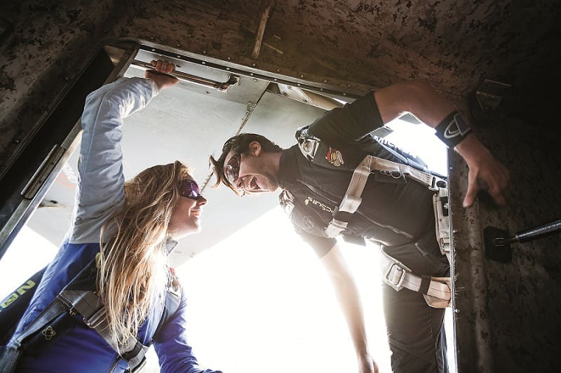 El publicista Claudio Troncoso (37) y su pareja, la profesora de Educación Física Paula Ivovich (27) saltan desde un avión a 4.000 metros y vuelan en paracaídas 12 veces a la semana. Es su trabajo –tienen una productora audiovisual aérea– pero también es un momento de gran plenitud: los hace sentir vivos. "Siempre soñé con volar. Veía en películas y comerciales cómo la gente saltaba de los aviones y alucinaba. Yo quería estar ahí", cuenta Claudio. Su sueño lo cumplió a los 22 años, cuando estaba estudiando en Barcelona y visitó Skydive Empuriabrava, en Costa Brava, el centro de paracaidismo más grande de Europa. Tan fuerte fue la experiencia que decidió que se dedicaría a ello el resto de su vida. En el mismo centro de Barcelona se formó como paracaidista y luego se quedó tres años como instructor y camarógrafo aéreo. Fue durante esos años que conoció a Paula, una chilena que estaba viviendo en Francia y también era una aficionada paracaidista. Juntos volaban 11 veces al día. Convencidos de su vocación, en 2013 regresaron a Chile y, junto a otros tres socios, crearon su productora de filmación área Circo Volante. "Desde que empecé a volar vivo la vida con otro sentido. Ha cambiado mi forma de ver las cosas, me tomo todo con más tranquilidad porque me conecté con la verdadera alegría de la vida", dice Paula. Y Claudio agrega: "Estar ahí arriba es dejar de lado todos los problemas: no existen los temas cotidianos. Eres tú y el cosmos, se da una unión muy power. Y, como uno está desafiando a la muerte –somos conscientes de que cada salto puede ser el último–, eso te hace sentir vivo. Es la mejor sensación del mundo".