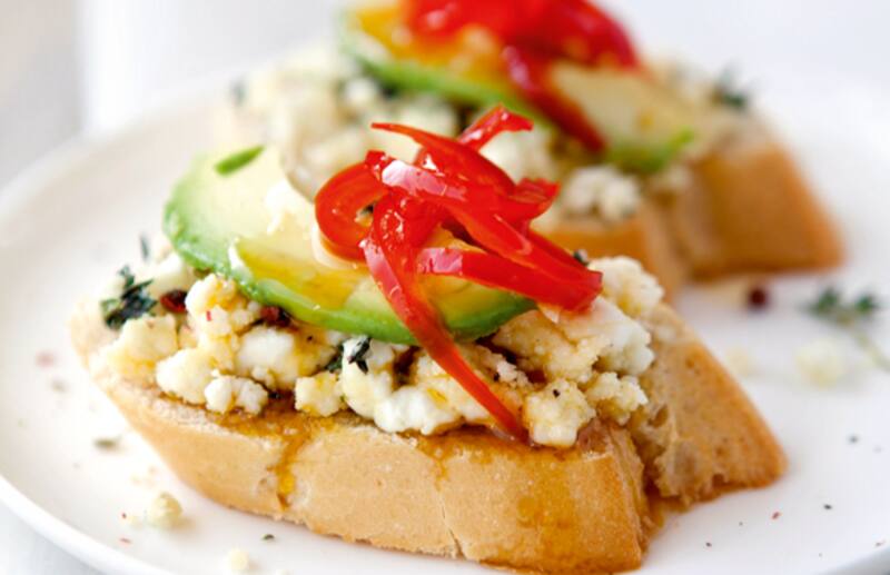 Bruschetta de queso feta de cabra y mermelada de pimentón (para 12 unidades)
