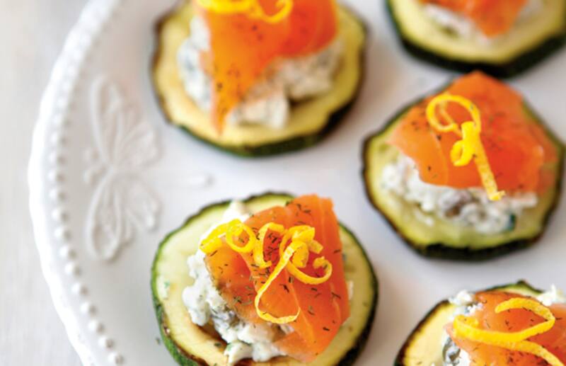 Canapés de zapallo italiano con queso crema de cabra y salmón (para 24 unidades)