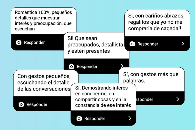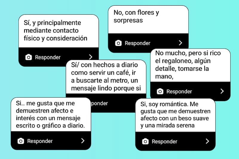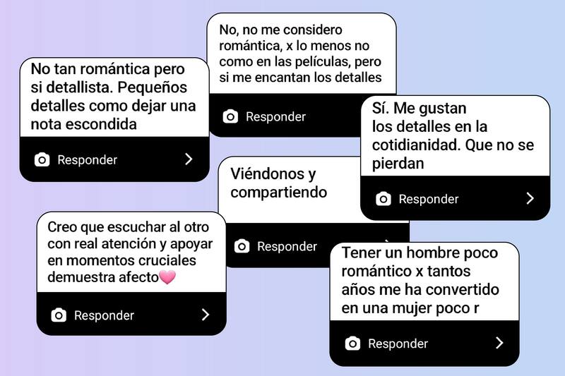 No se trata de una muestra representativa, pero coincide con un ejercicio que hicimos con nuestras lectoras a través de Instagram. Frente a las preguntas: ¿Te consideras romántica? y ¿Cómo te gusta que te demuestren afecto?, la mayoría respondió coincidentemente con los resultados de la encuesta de Bumble: “Me considero romántica y me gustan los pequeños gestos amorosos”. “Me gusta que me muestren afecto con detalles, mensajes, canciones, acordándose de algo que me gusta”. “Un poco romántica. Que se anticipen, resuelvan y estén atentos a ti”. “Romántica 100%. Me gustan los pequeños detalles que muestran interés y preocupación, que escuchan”. Fueron algunas de las respuestas.