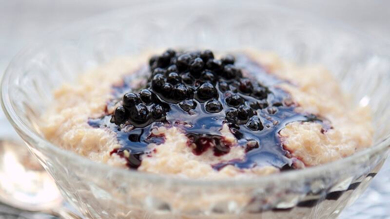 3. En pocillos individuales servir la quínoa con leche y acompañar de la salsa de maqui.