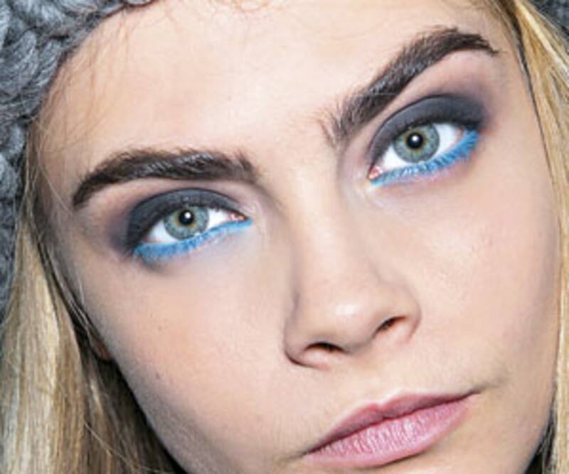 El trazo celeste delineando la parte inferior del ojo de la súper estrella del momento Cara Delevingne durante el desfile de Giles en Londres, es un asunto que perturba, al igual que cada vez que aparece el color celeste manchando un párpado. Difícil apuesta que apareció con inusual frecuencia en las semanas de la moda.