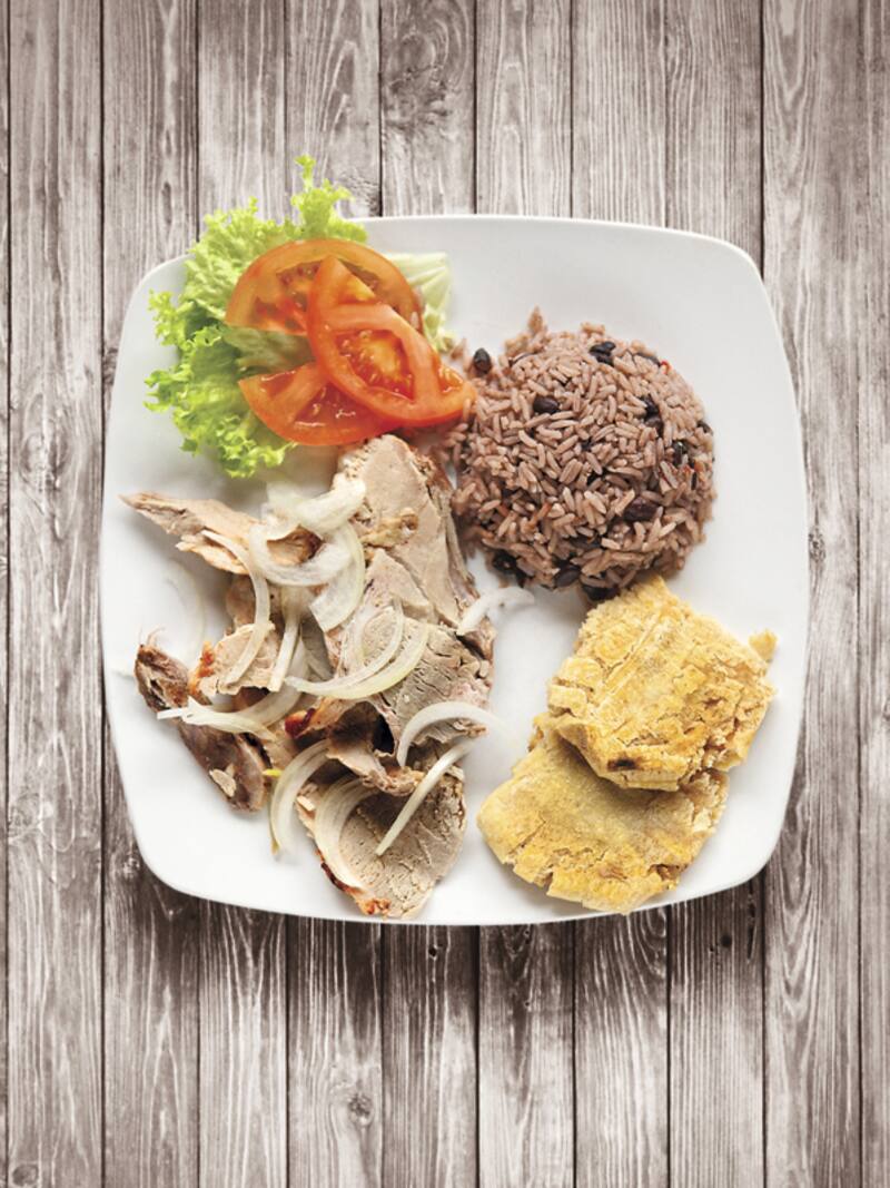 Era, hasta entonces, un ingrediente inexistente en América. Pero, fue en 1493, por insistencia de la Reina Isabel La Católica, que Cristóbal Colón llevó en su segundo viaje a América los primeros ocho cerdos que pisaron Cuba. Dice la historia que a los aborígenes locales les gustó tanto su sabor, que empezaron a criar lechones. Eso sí, como en todo cruce de culturas, a la receta hispana, que consistía en asarlo en una cacerola, los indígenas le incorporaron su qué: cavar una fosa, colocar leña o brasas de carbón, enterrar dos estacas y, sobre ellas, voltear por horas un pequeño lechón atravesado por una vara. Con el pasar de los años y de los siglos, en Cuba se hizo costumbre –sobre todo en el campo– cocinar el lechón asado para celebrar cumplea- ños, matrimonios, Navidad y Año Nuevo. Por eso hoy se le considera el plato nacional. El secreto de la receta varía de familia en familia, pero pasa en buena parte por remojar al lechón un día entero, en el mojo o adobo: una mezcla de cebolla, ajo, orégano, laurel, comino, sal y pimienta con jugo de limón o naranja agria. La sobra del menjunje se usa para hidratar la carne mientras se va asando. A la mesa, el lechón llega con una manzana en el hocico y sobre una gran bandeja donde también van los acompañamientos: arroz congrí –con frijoles colorados y trocitos de tocino–, yuca, tamales, boniatos –o camote– fritos, tostones de plátano y ensalada de vegetales. En el restorán Son Cubano, dos maestros de cocina oriundos de la isla, supervisados por el chef Alberto Gavilán –cubano, que trabajó en uno de los restoranes más renombrados de La Habana, La Fontana– preparan una versión de esta preparación que ofrecen en la carta entre 5 alternativas de platos fuertes 100% cubanos: cerdo asado con arroz congrí y tostones de plátano ($ 5.000). Para acompañar, el chef Gavilán sugiere una malta, bebida no alcohólica de cebada, muy nutritiva y popular en Cuba