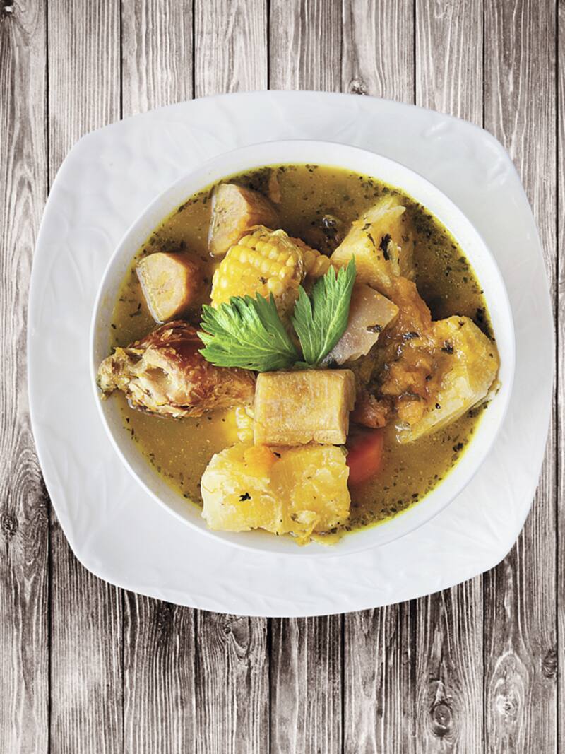 En una olla grande se prepara el sancocho, un cundidor caldo hecho con carne, verduras y tubérculos que está entre los platos más populares en varios países del Caribe, pero en República Dominicana es donde tiene más versiones, incluido el sancocho de las siete carnes, motivo de orgullo nacional. "Hay muchas cosas que el sancocho lleva y que yo solo he visto en República Dominicana, como la yautía amarilla y el ñame", dice la dominicana Vivian Vargas, cocinera profesional que hace cuatro años abrió junto a su marido, en pleno Barrio Patronato, el restorán Sabor Dominicano. Vivian echa a la olla chuleta y costillar de cerdo ahumado, tocino, pollo y longaniza y, cuando la carne suelta la grasa, agrega el agua y lo que los dominicanos llaman los víveres: tubérculos, verduras y hortalizas que se añaden al cocimiento. En Chile no encuentran todos los que lleva la versión dominicana, pero sí algunos fundamentales para darle espesor al sancocho como el zapallo y la yuca. También lleva choclo y cilantro, y se sirve acompañado de arroz blanco. "Es una comida que sostiene mucho, dicen que durante La Colonia se lo daban a los esclavos para que soportaran el trabajo duro", cuenta Vivian.