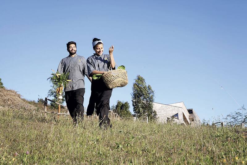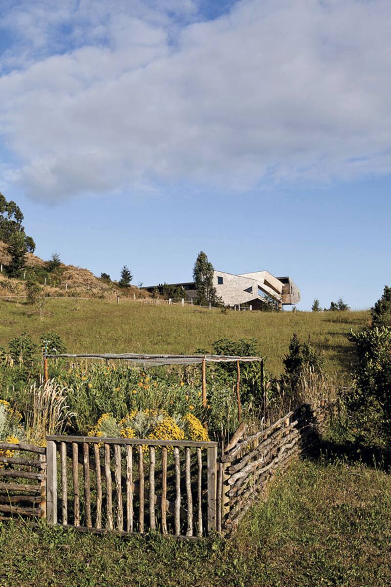Lechugas de diferentes tonos, espinacas, papas chilotas, habas, rabanitos, chalotas, hinojos, zapallos, decenas de hierbas aromáticas y decenas de flores y brotes comestibles están aún más cerca, en la huerta orgánica del Tierra Chiloé, que fue diseñada el año pasado –junto con la ampliación y remozamiento del hotel– en función de las necesidades y de las expectativas de la carta que recibiría a los pasajeros en esta nueva etapa.