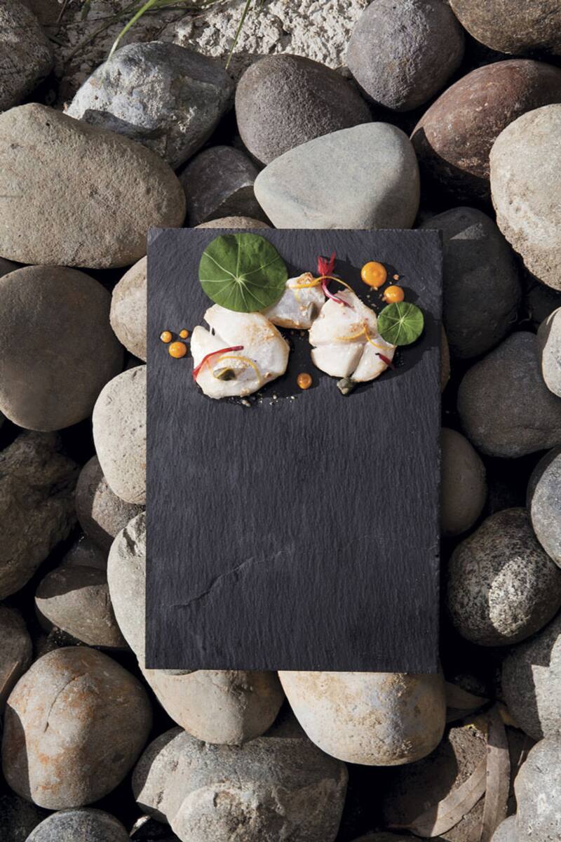 Para la cocina de Natalia Canario –morena, delgada, femenina, un piercing en la nariz– la materia prima natural y local es esencial. Por eso mismo, cada día recolecta ella misma de la huerta y del invernadero lo que su carta requiere. Por eso también en temporada baja recorre Chiloé en busca de productores que estén trabajando orgánicamente y que puedan proveerle nuevos sabores. Incluso más que lo que el mar le ofrece, para Natalia las verduras, los brotes, las frutas y las flores son un elemento central. "Me gusta la idea de mostrarle a la gente que la naturaleza nos ofrece cosas menos convencionales que saben muy bien y que son muy nutritivas y saludables", dice. Considera que la comida clásica chilota es muy pesada, mucha carne, mucha grasa, muchas papas; ella diseña platos en que la tierra y la frescura siempre son protagónicas. Preparaciones en que cada sabor es reconocible, en que cada ingrediente adquiere brillo propio.