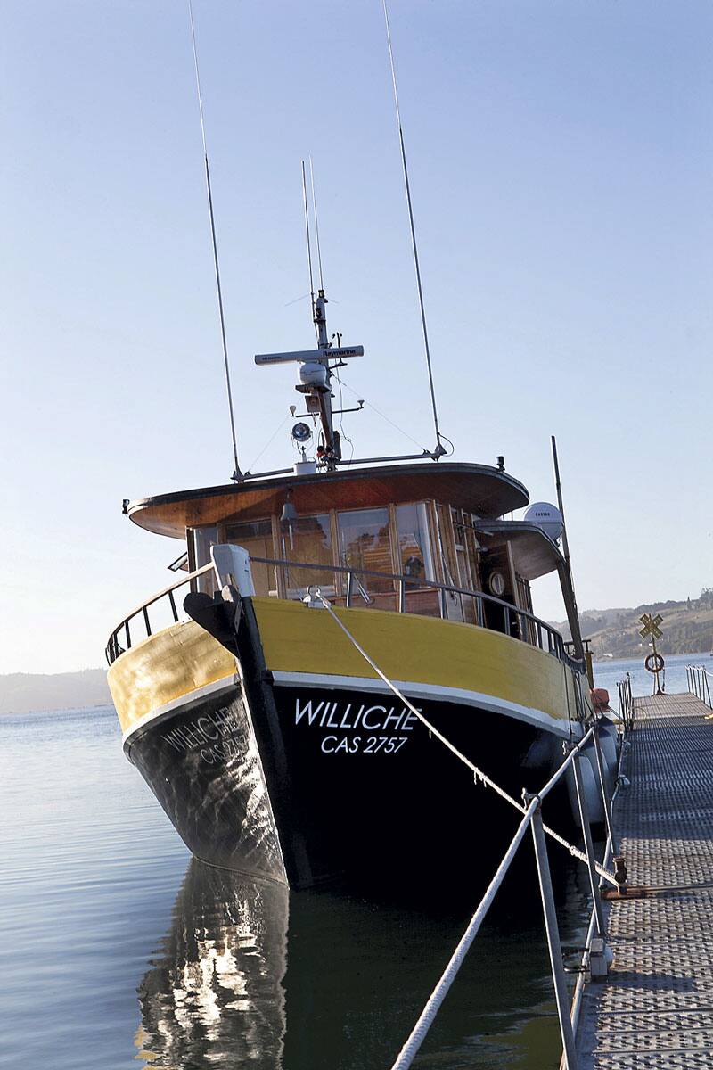 Embarcación Williche, donde se hacen los paseos a las islas, siempre acompañados de almuerzos fríos a bordo.[/caption]