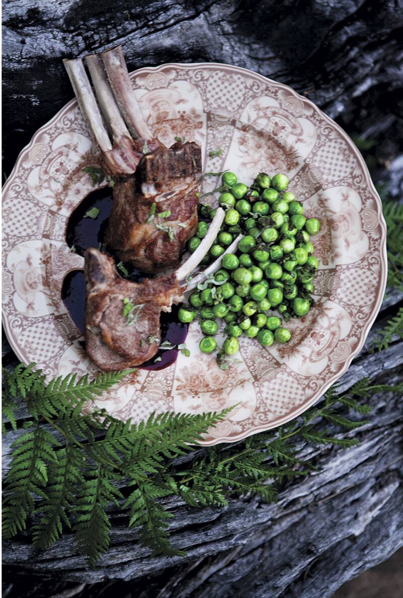6. En platos individuales distribuir las chuletas, rociar con la salsa de cerezas y servir de inmediato acompañado de las arvejas.