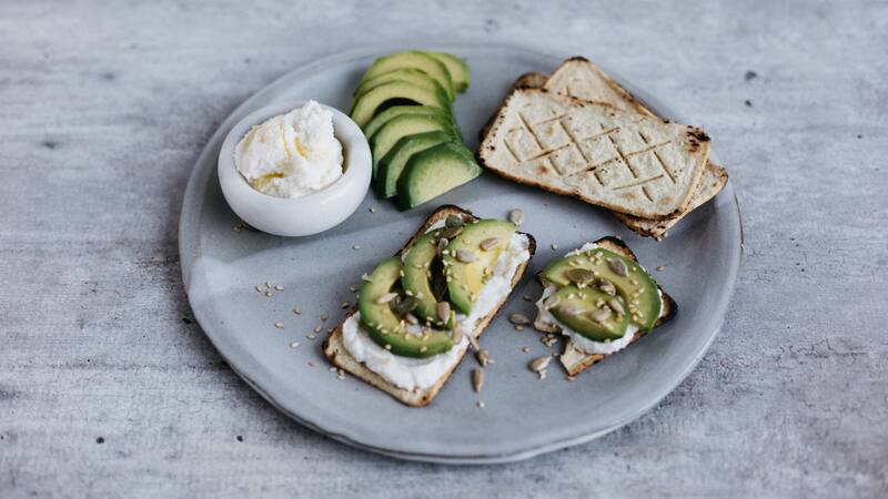 3. Para armar, sobre cada Salma reparte una capa de ricotta, encima agregar láminas de palta, rocía con un poco de aceite de oliva y termina con las semillas. Servir de inmediato.